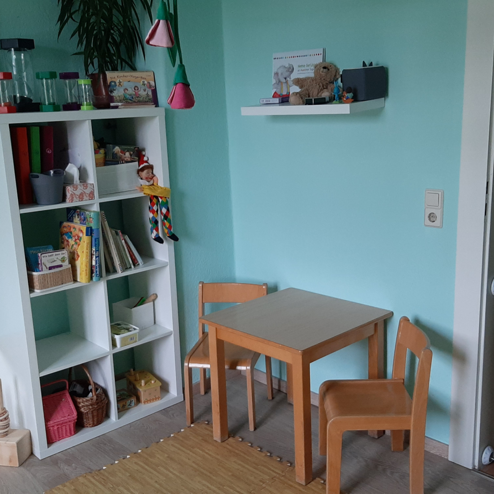 Die Küche ist besonders wichtig: Hier bereiten wir – auch oft gemeinsam mit den Kindern – die Mahlzeiten zu und lassen es uns zusammen am großen Tisch schmecken. In den Räumen gibt es verschiedene Bereiche zum Basteln oder Spielen – manche Bereiche werden auch für verschiedene Anlässe umgeräumt.